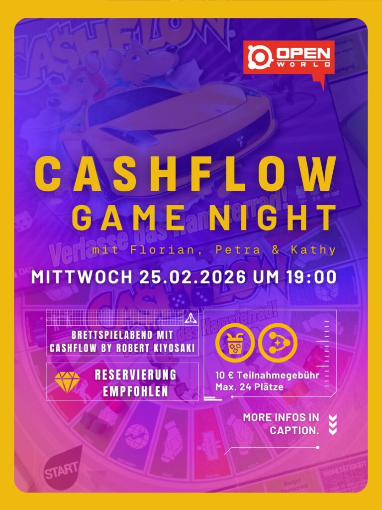 Gemeinsam tauchen wir spielerisch in Themen wie Cashflow, Investitionen, finanzielle Entscheidungen & Money Mindset ein – ohne Druck, ohne Vortrag, dafür mit Aha-Momenten, Austausch und Spaß.